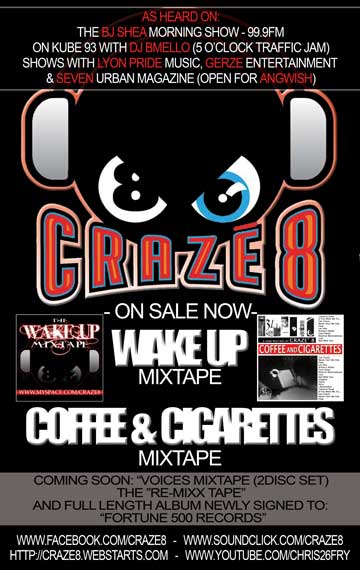 Craze’ 8 is native to the Northwest, born in Tacoma, growing up in Spanaway and Everett. He has maneuvered his way through the streets, sticking and moving over many years and many hoods, learning the streets and making a way for himself. Through this hustle, 8 mastered his game and speaks fearlessly. Now one of the hardest working artists and promoters in Tacoma. He now owns 34th Hour Records and has gained much exposure for the label. As a lyricist, 8 arrived established and just keeps getting better with each beat. Craze 8 is coming to your town and is definitely someone to watch for.
